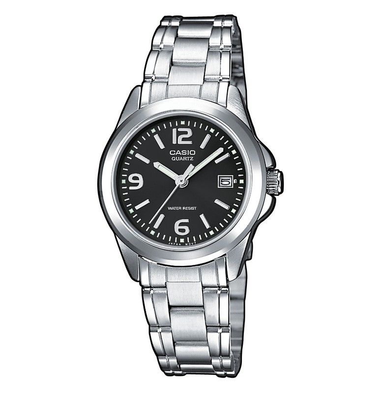 Reloj CASIO COLLECTION Women LTP-1259PD-1AEG. Pantalla de neónIndicador de FechaCristal mineralCaja de lat��nCorrea de acero inoxidableCierre plegable3 años - 1 pilaClasificaci��n de resistencia al agua (WR) seg��n ISO 22810