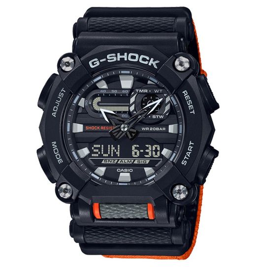 Reloj G-SHOCK modelo GA-900C-1A4ER marca Casio para Hombre en color negro fabricado con Correa de tela con un tipo de cierre de Hebilla. Resistencia al agua de 20 BAR (200 metros). Es un reloj analógico-Digital con una batería de 7 años - 1 pila y una precisión de