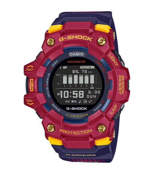 Reloj G-SHOCK modelo GBD-100BAR-4ER marca Casio para Hombre en color rojo fabricado con Correa de resina con un tipo de cierre de Hebilla. Resistencia al agua de 20 BAR (200 metros). Es un reloj Digital con una batería de 2 años - 1 pila y una precisión de Smartphone Link